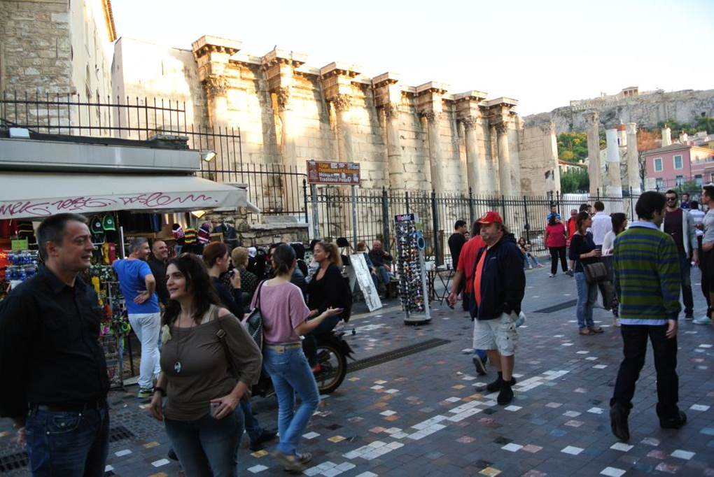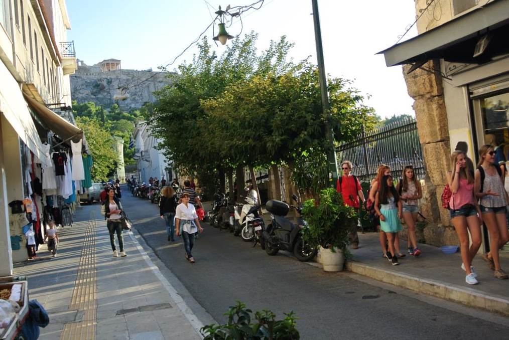新アクロポリス美術館の見学を終え、次の目的地モナスティラキ広場へ徒歩でぶらぶら向かいます。距離にしては1.2KMぐらいですが、途中にカフェやみやげ物の店が沢山集中しているので、見ながら行くと1時間ほどかかります。