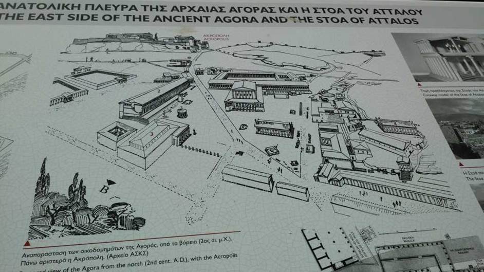 この古代アゴラでは、哲学者や政治家の演説もよく行われ、ソクラテスやプラトンもこの場所で度々問答を交わし拠点とした。ここは民主制発祥の地といって良いであろう。(下)