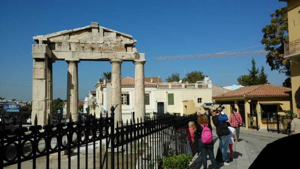 ローマ皇帝ハドリアヌスが132年に建設したこの施設は古代ローマのフォルム(広場)を原型に造られた。柱頭コリント様式であり、ローマの建築様式である。隣接して読書室、角には講堂があったといわれている。