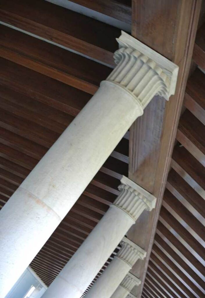 南北13.7m 東西31.7mの大きさで、短辺は6本の、長辺は13本(総数34本)の円柱で屋根を支えるドーリア式建築物である。
