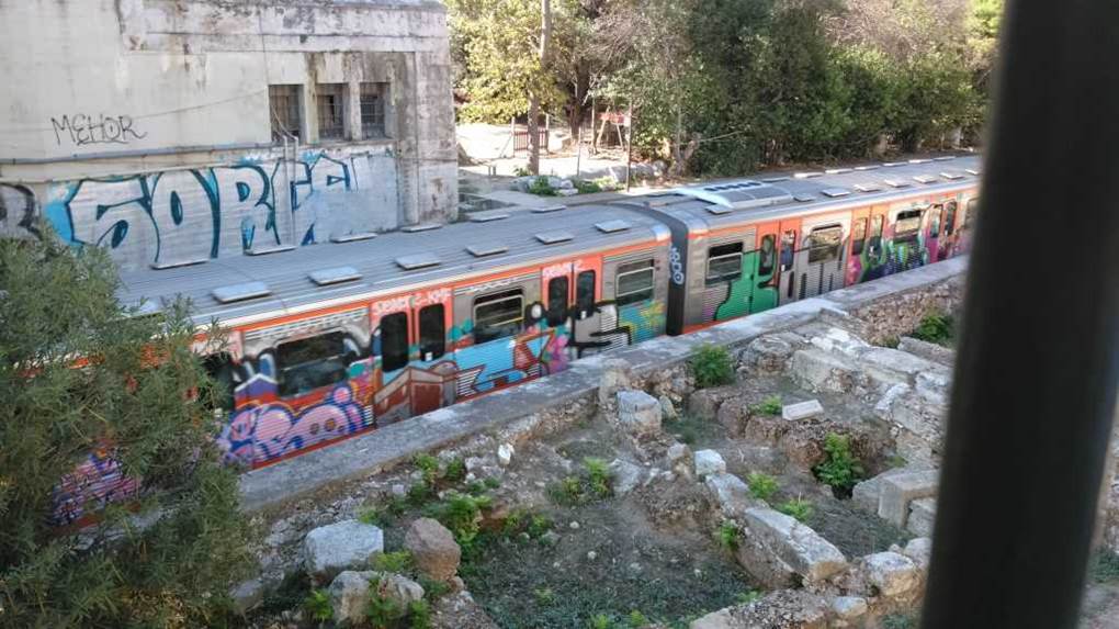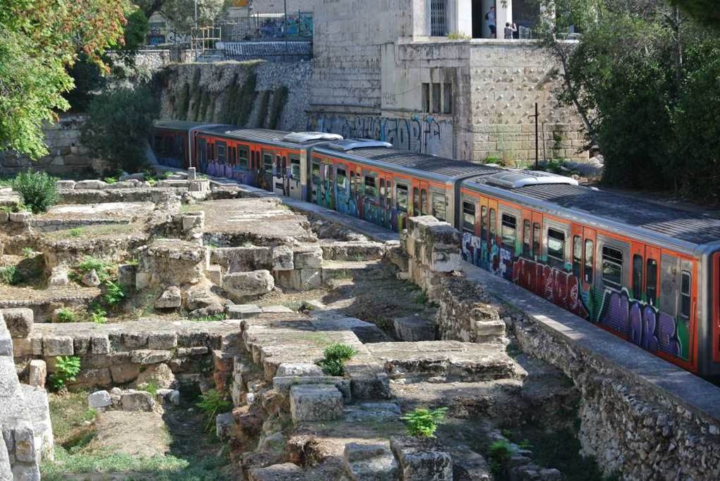 古代ギリシャの遺跡発掘物の間を縫って走るアテネの地下鉄。このような光景は世界広しといえど、ここだけの風景であろう。