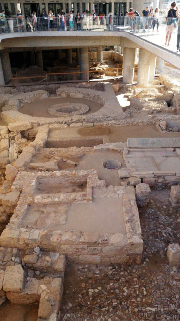 ビザンティン時代の物見の塔の跡。考古博物館のガラスの床下に見ることが出来る。
