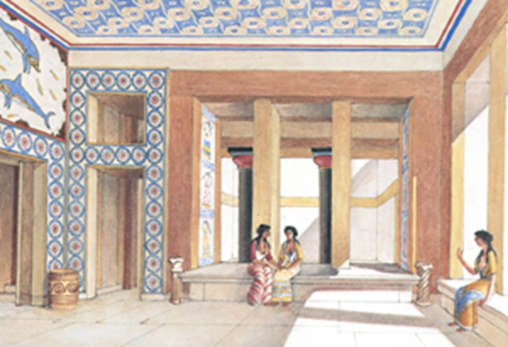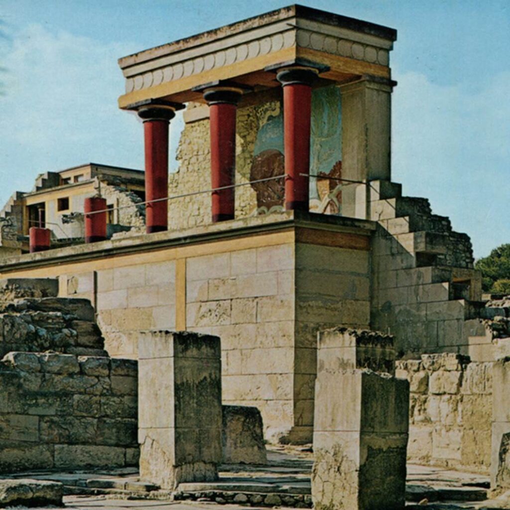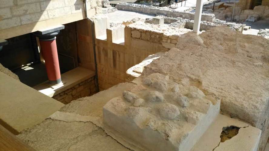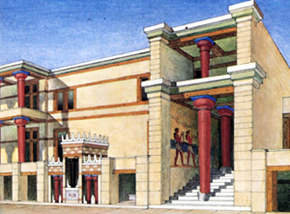 この初代宮殿は紀元前1700年頃の大地震で破壊され、その後再建された新宮殿も紀元前1380年頃の火災(諸説あり)で滅亡に追い込まれたとされる。