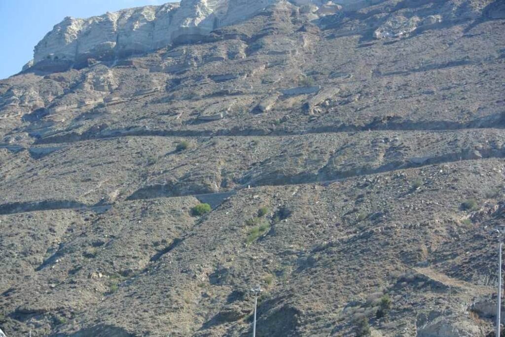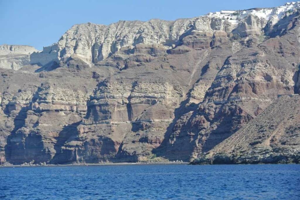 紀元前1650年ごろの大噴火が、この地形を作り出したといわれている。そして、この噴火がミノア文明に甚大な打撃を与えたといわれている。
