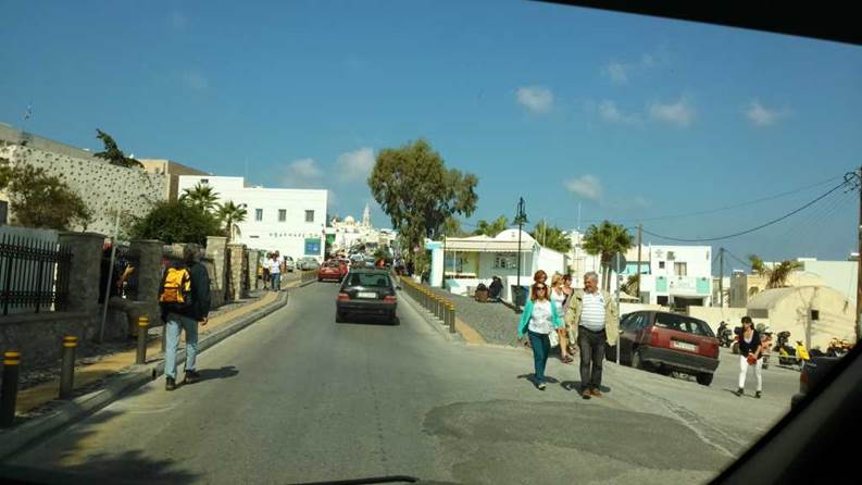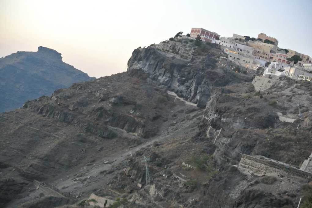 外輪山の麓から海抜約300Mの頂点のあるフィラの町まで、ひらすら登って行きます。崖の上の白い街が目的地です。世界でも珍しい奇観です。
