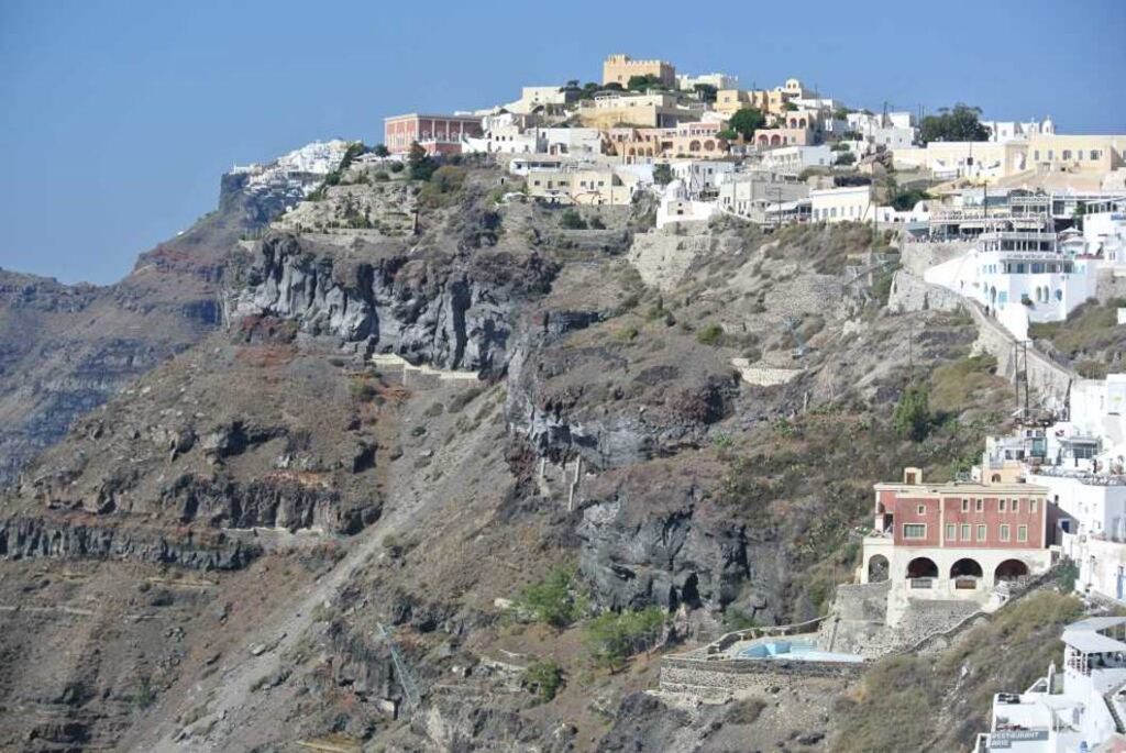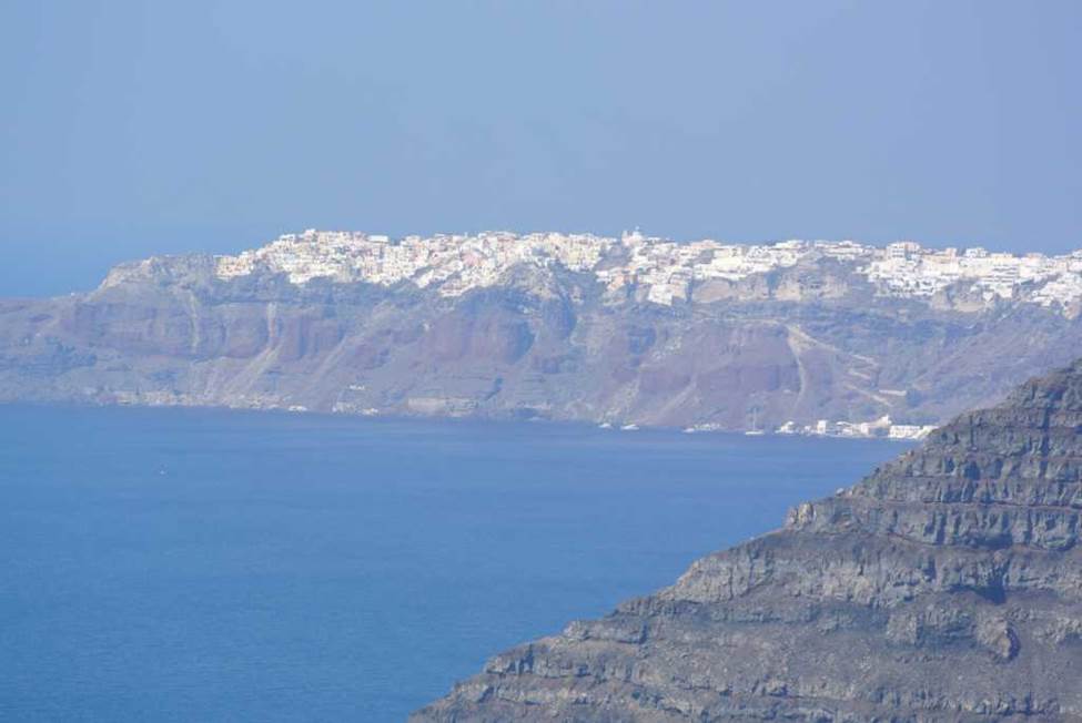 断崖絶壁上の外輪山の頂点に、フィラという街が形成されている。