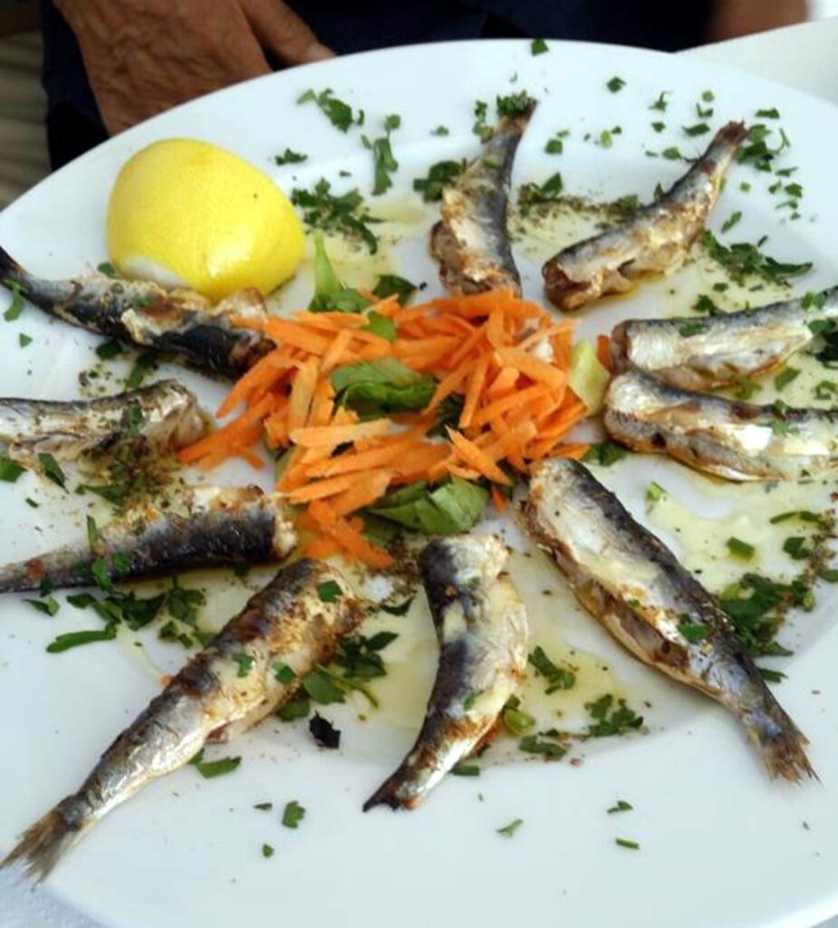 朝食の数々のギリシャ料理。いわしのオリーブマリネ。