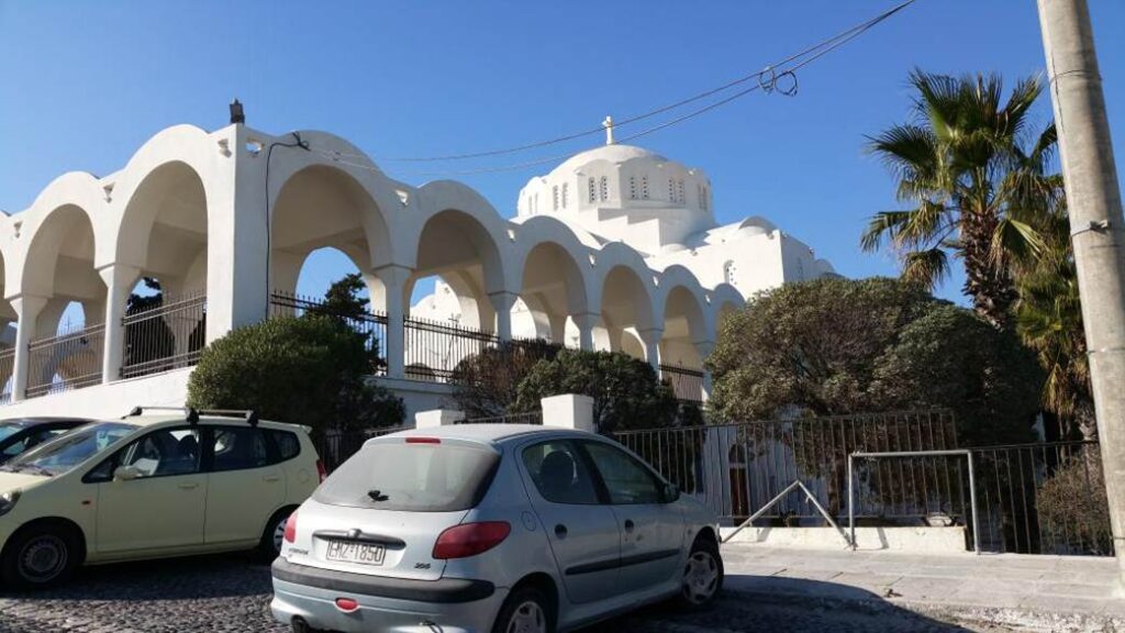 サントリーニ島の教会はほとんどがギリシャ正教会ですが、カトリック教会も幾つかあり、共存しています。