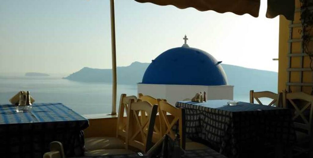 カルデラの洞窟ホテルは素泊まりなので、周辺を歩き同じく外輪山上にあるレストランを見つけ、朝食をとる事にします。