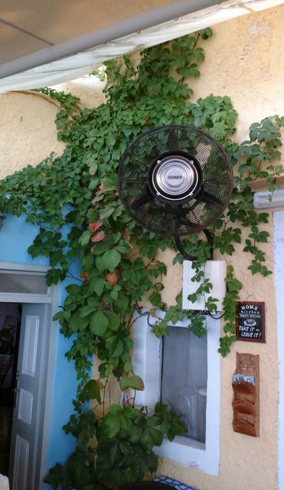 サントリーニ島の年間降水量は554mmで、東京が1,520mmであることから、3分の1程度であることがわかります。サントリーニ島の飲料水は貴重です。「その代わりビールを」という看板を見つけた。良いしゃれになっています