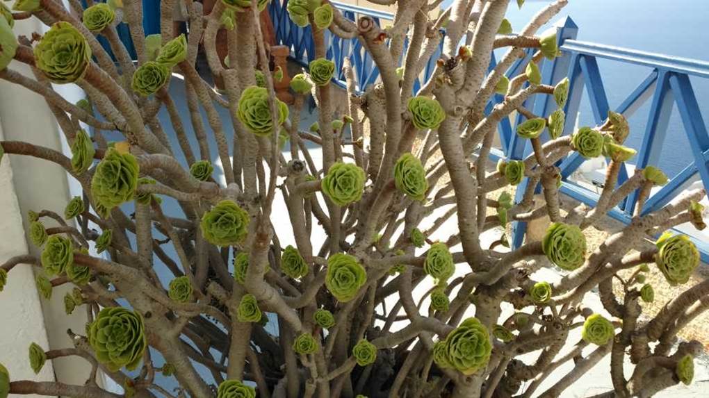サントリーニ島は、雨が少ないので、水分を幹に充分に溜め込んでいます。