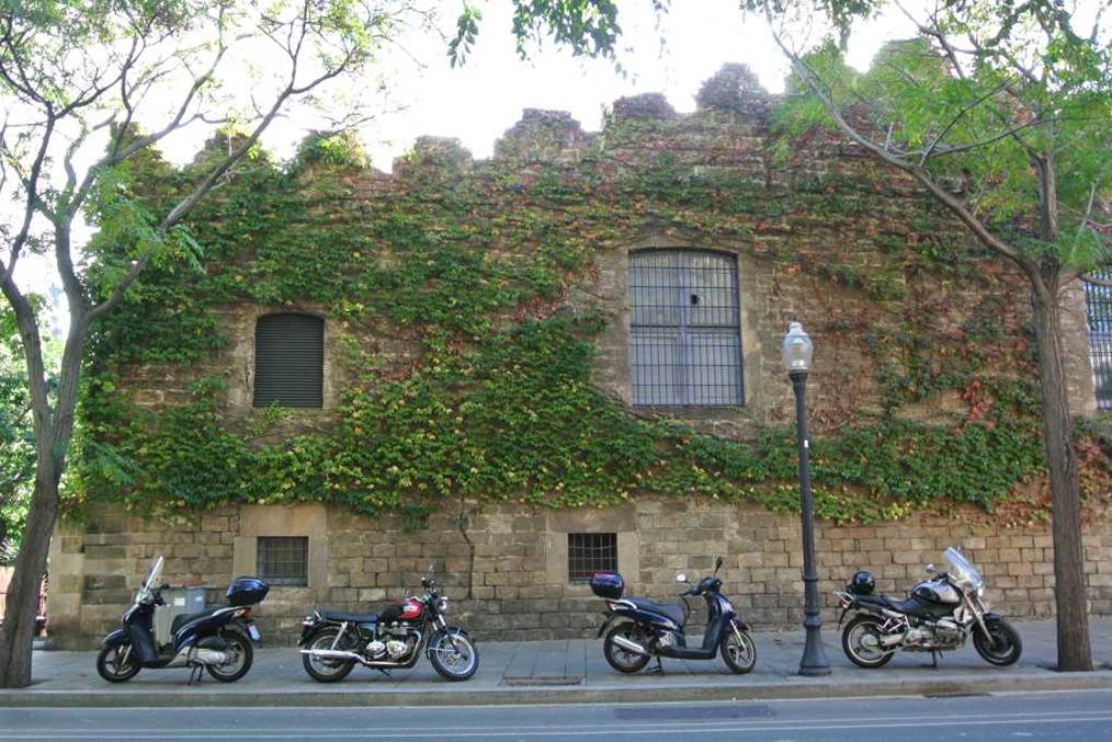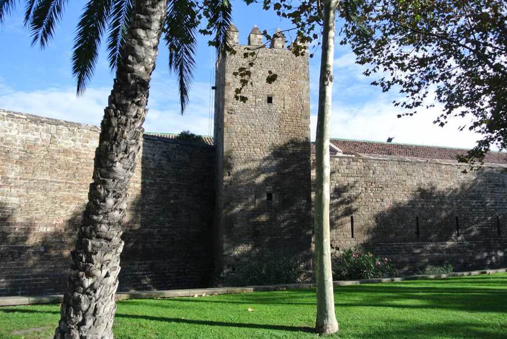 コロンブスの記念塔から、世界的に有名なランブラ通りに入る前に寄り道して東側に入って見た。そこで中世からある城壁に出会った。(上地図⑤の部分)