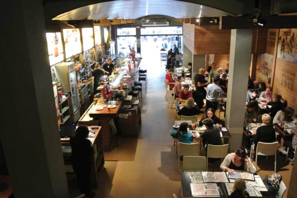 ランブラス通り、ワインとタパスを出すカフェテリア内部。