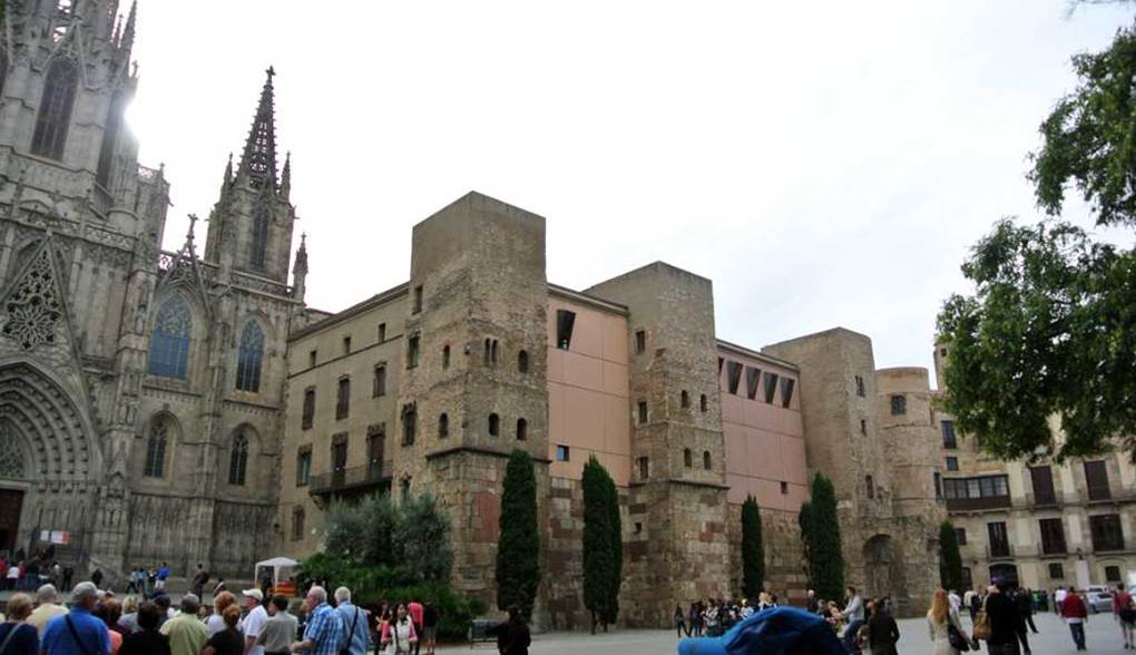 ランブラス通りの東側の街区は、ゴシック地区と称され、暗い迷路のような小道を当てもなく歩いていると、突然広場に出たところで、この様な遺跡に遭遇する。