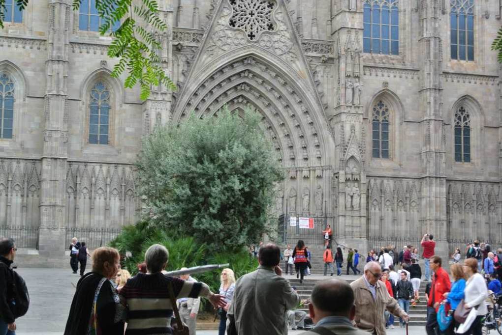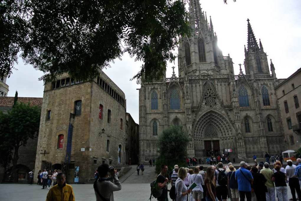 このゴシック様式の聖堂は、幅広いランブラ通りから、東へ中世然とした迷路のような薄暗い小道を歩かないと到達できない。1298年に建設が始まり、およそ150年後に完成した。