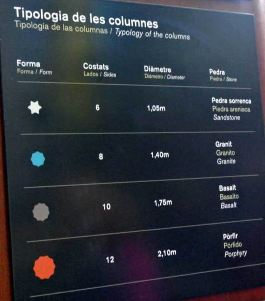 灰色の柱。計10本、直径1.75m 材料は 玄武岩(Basalt)