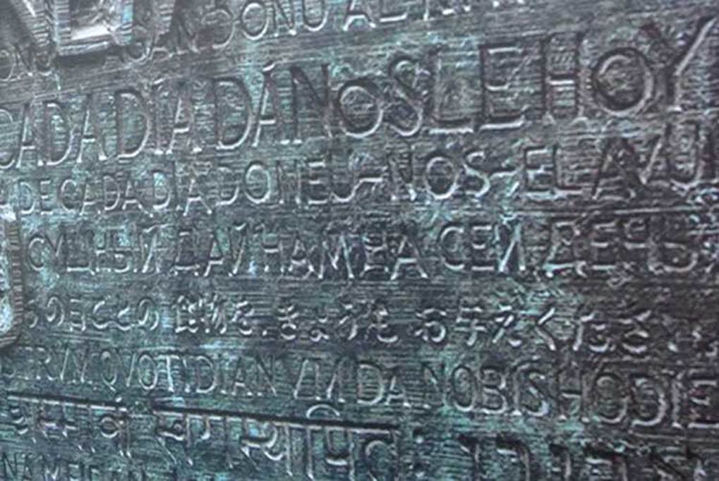 聖書の中の記述の一部を、世界各国の言語で表した銅版。