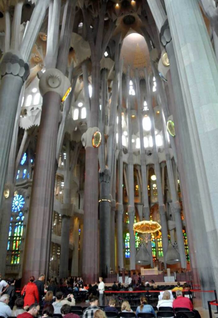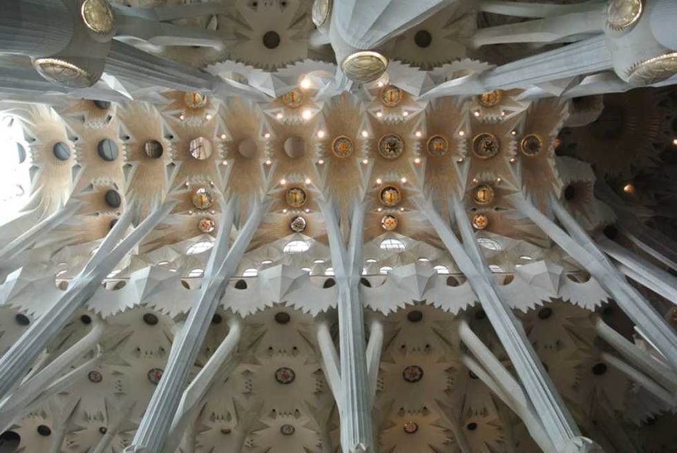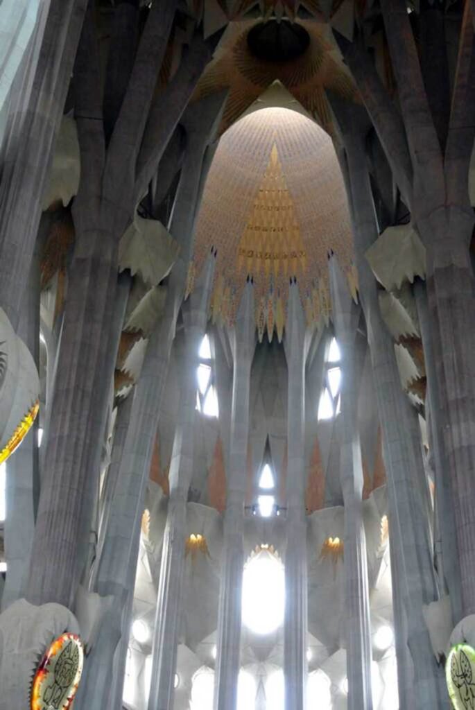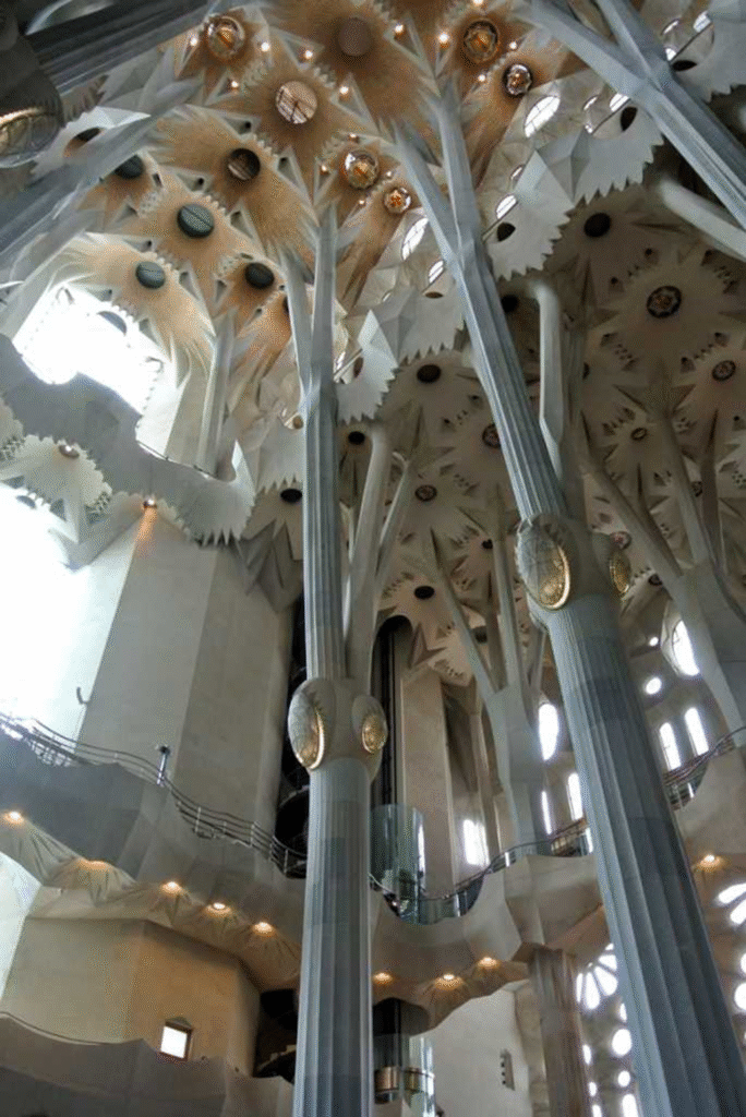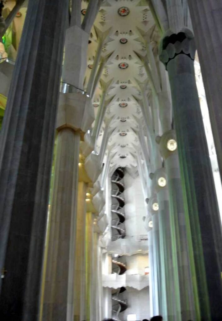 樹木をモチーフにした巨大な柱は上部が枝分かれをし、クーポラ(丸屋根)の重みを分散して支えている。見事に構造的な均整がとれ、重力を支えている。
