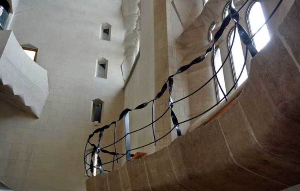 ガウディの建築は自然界に存在する生物的な曲線を応用した建築が特徴である。自然界には直線を見ることがないので、建物全体にわたって、直線が用いられていない。その設計手法は独自の構造力学的合理性を基にしている。