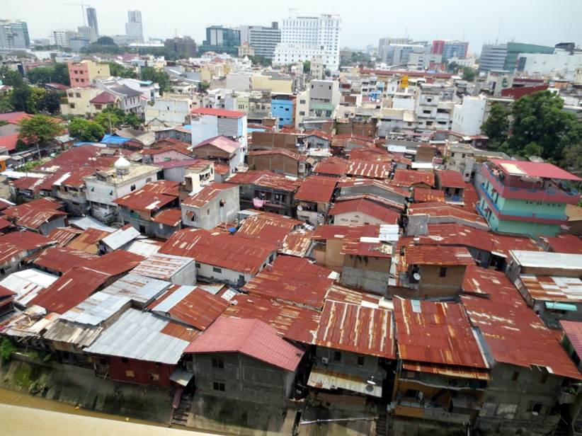 人口急増のため、高密度で占拠された中心市街地の一部。