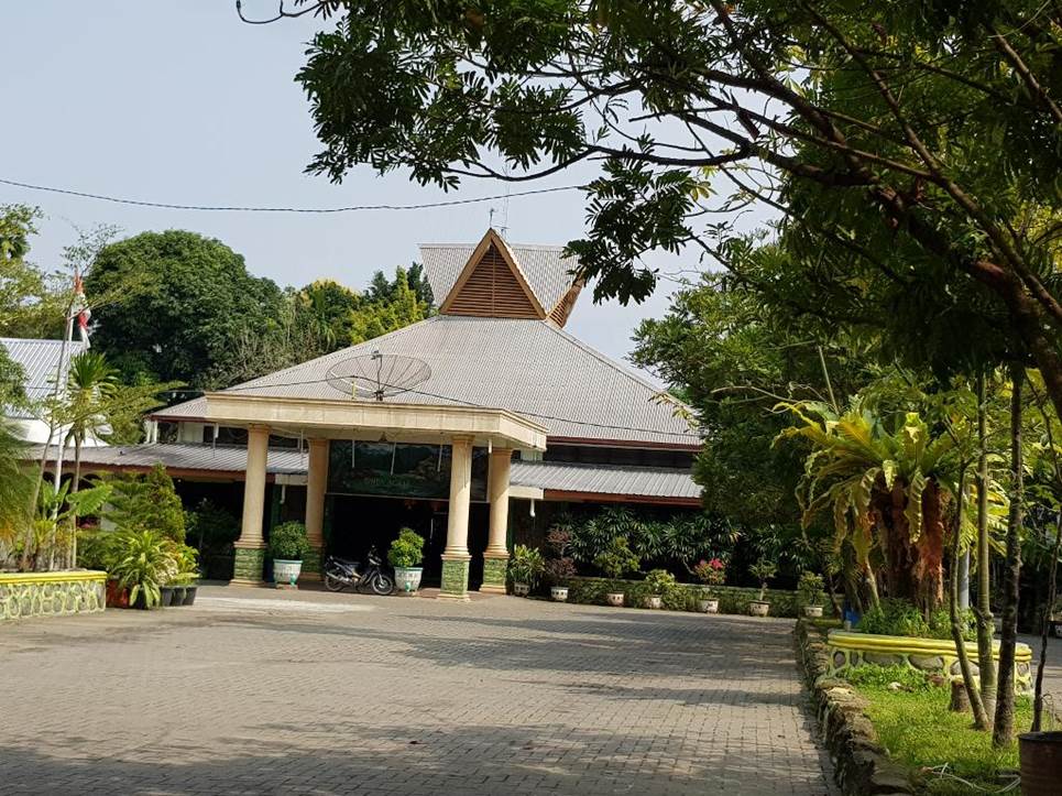 川上流のオランウータンなどを見るために、原生動物保護区に入るビジターが登記するための事務所の建物です。