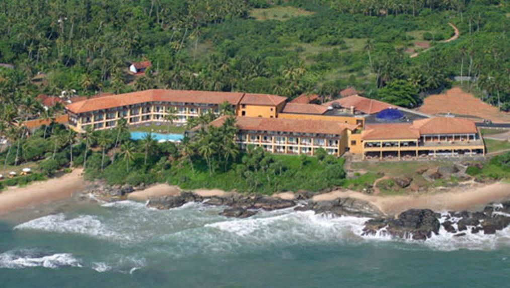 セイロン島の最南端、世界遺産ゴール要塞へ至近距離にあるリゾートホテルです。岸辺にインド洋の波が押し寄せています。