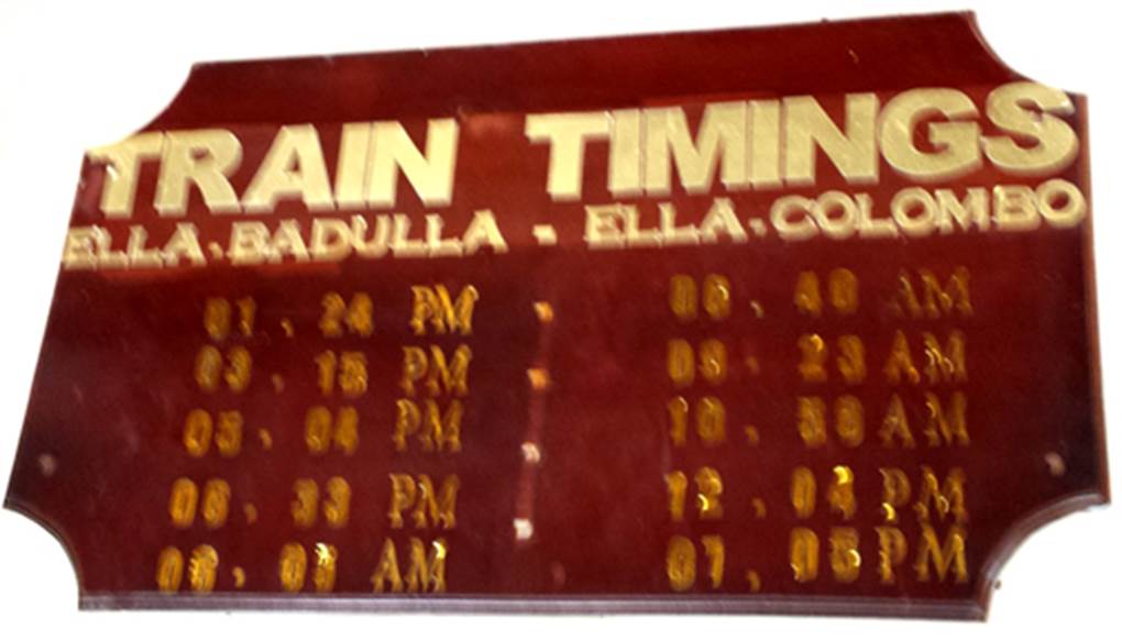 この駅を通る列車の本数はとても少ない。掲示板には、コロンボ方面に1日4本、反対側の終着駅バドゥラ方面に同じく1日4本