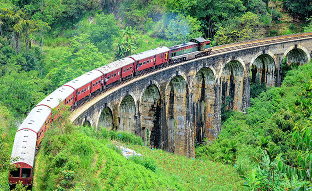 ナインアーチブリッジ(Nine Arch Bridge)は、エッラ駅から5キロ程ジャングルを歩いた先にある。緑豊かな茶畑の渓谷に架かる美しいレンガのアーチ橋を渡るジーゼル列車。立派な鉄道遺産だ。