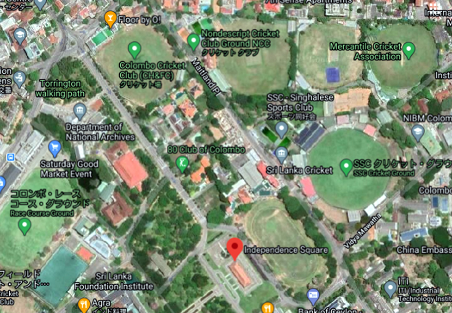 右手に旧植民地時代の国会議事堂、堂々とした建物で、コロンボ・フォート地区の一等地にあります。