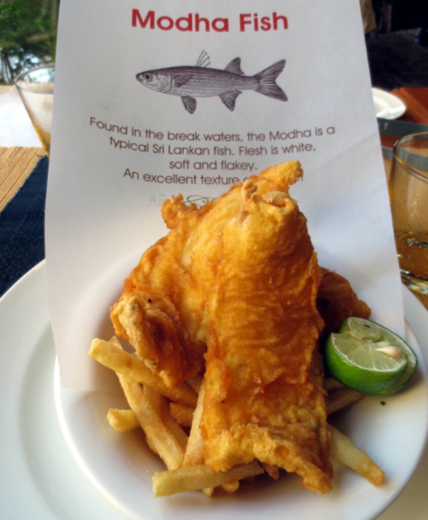 当地名物のModha Fish(スズキ?)の唐揚げ。カレー味です。