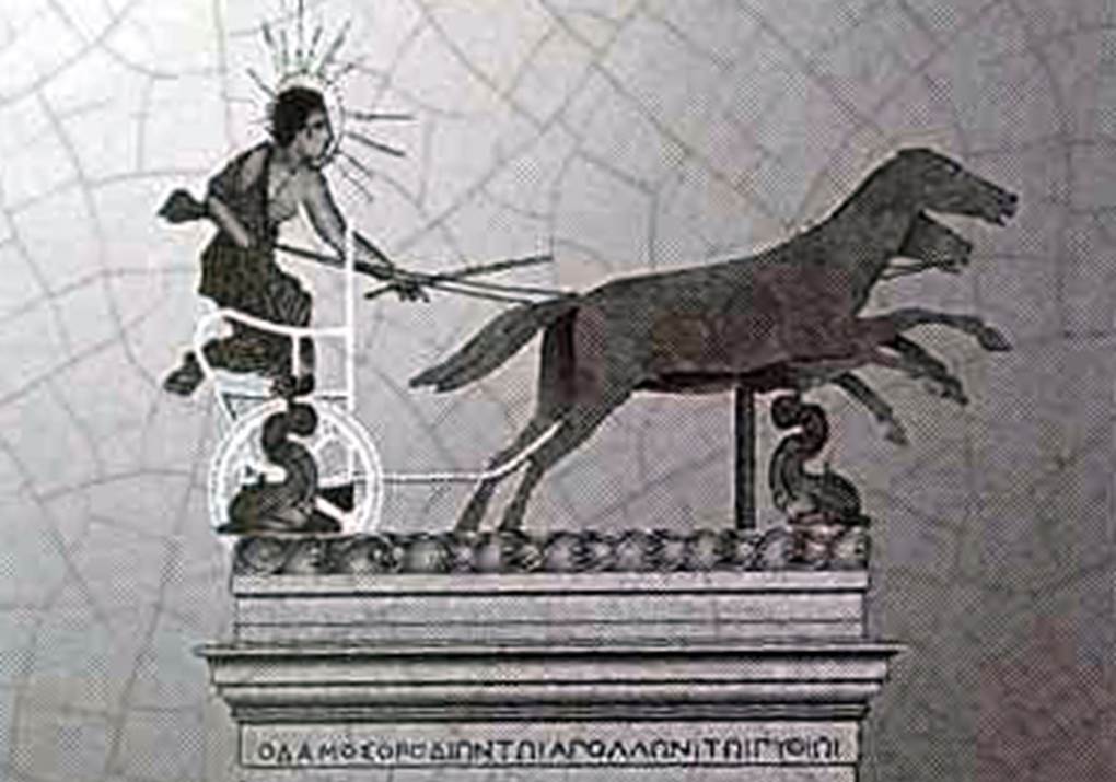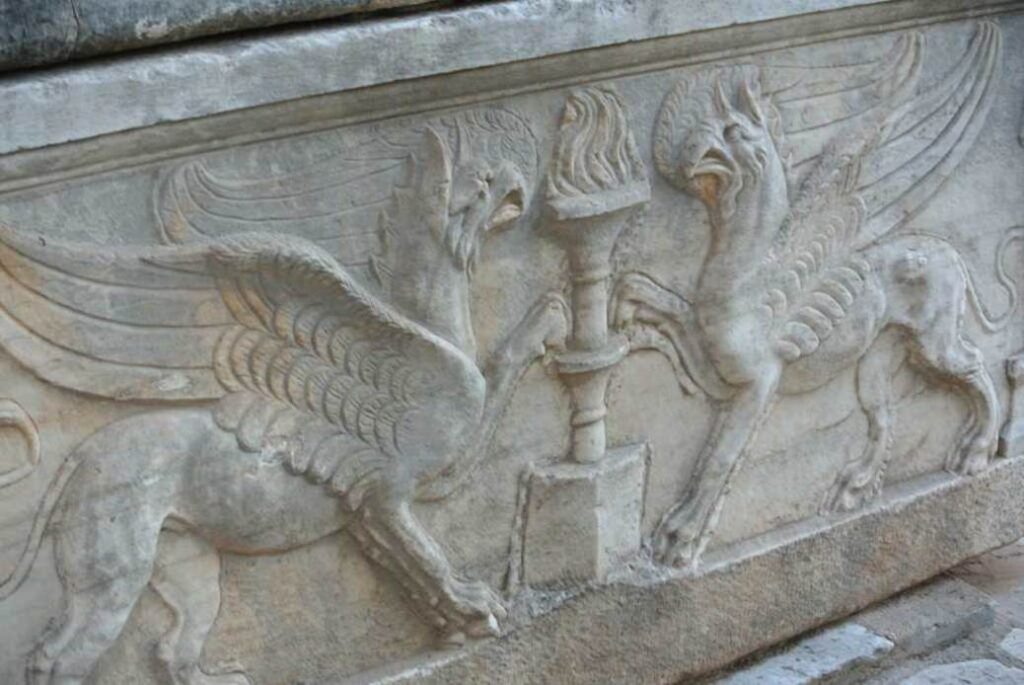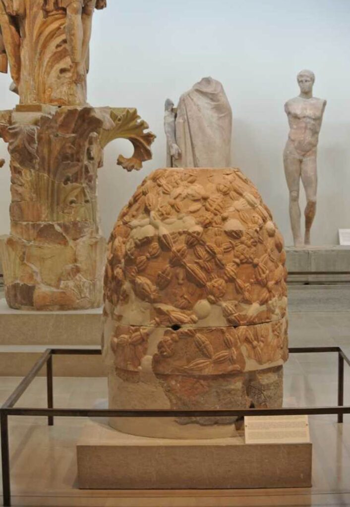 12.1m高の柱のイオニア式柱頭の上に置かれていた。