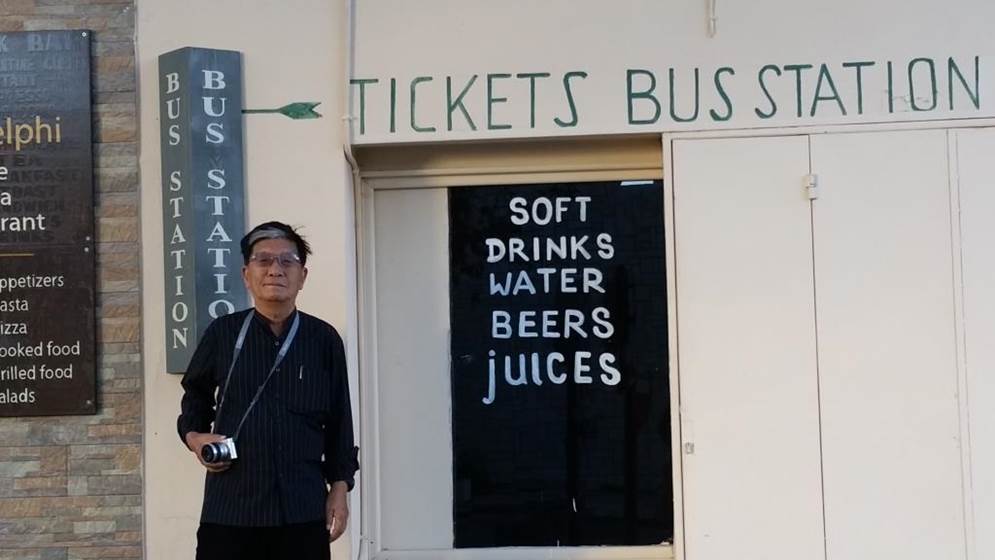 アテネ行きの路線バスのチケットの確保のため、地元の人に教えられて、バスの停留所に向かいます。場所を間違えないよう一応カメラに記録しておきます。