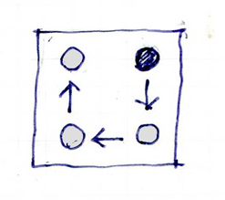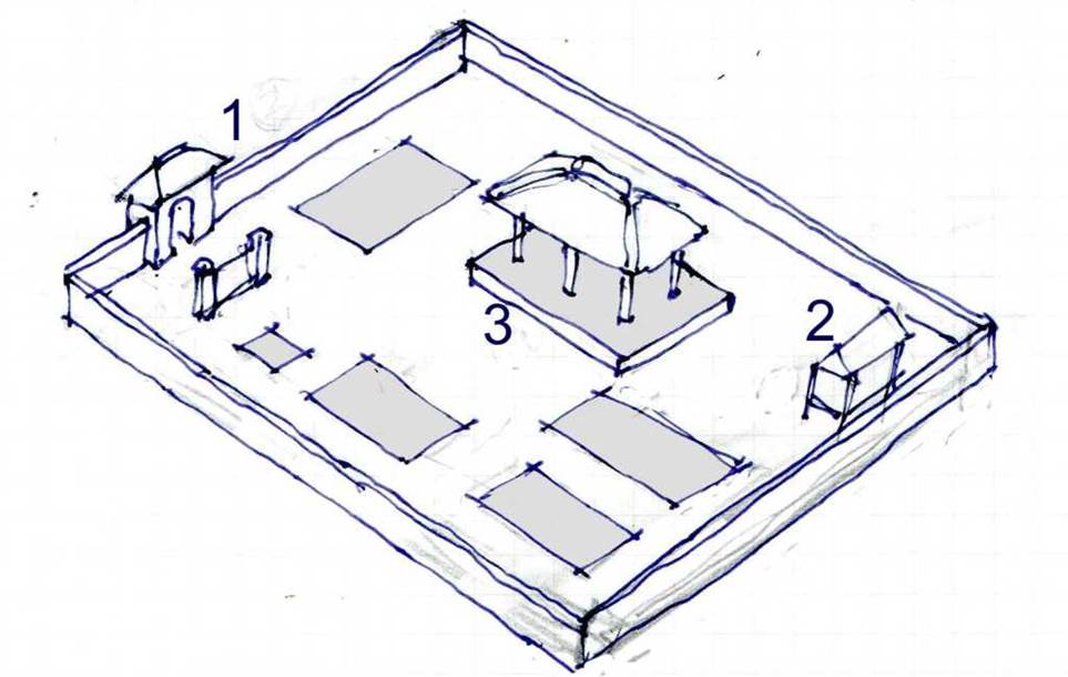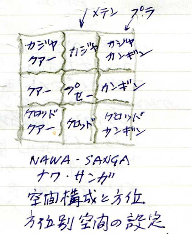 下記のように9分割された敷地に、方位別ヒエラルキーを投影した略図がNawa-Sangaであり、それをを示す。