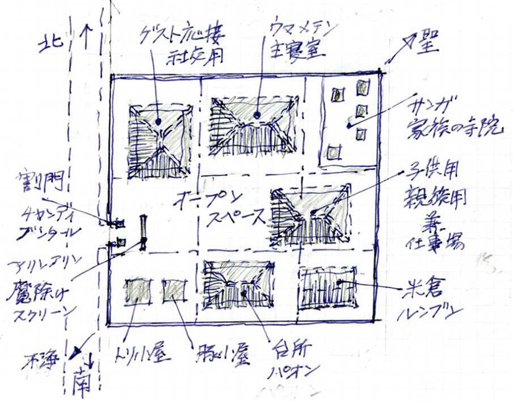 最高位は東北角=Utama/Utamaで、ここに家族専用の寺院が建立される。