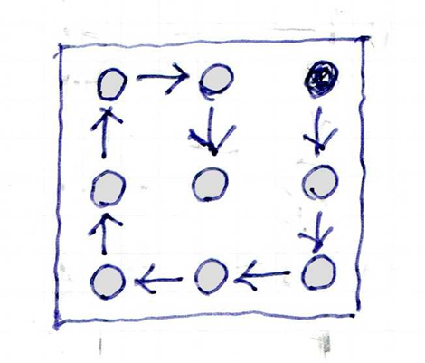 敷地内の各々の独立した家屋の柱の建て方のとして重要なのが順序である。、東北角を出発点とし、時計の針周りに応じて柱が立てられて行く。