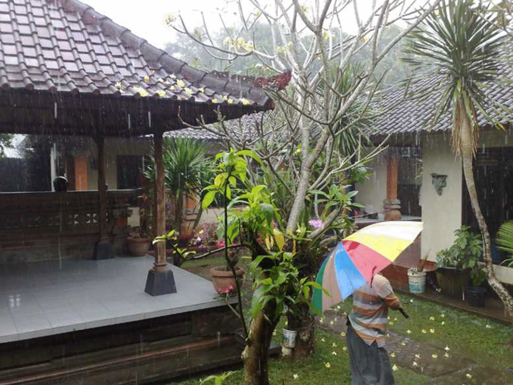 ところが、バリ島の一般的伝統的な住居の場合は、居間、寝室、台所、トイレ、収納庫などは敷地内にバラけることで、異なった用途上の空間、居間、寝室、台所、トイレ、収納庫などは、それぞれ独立家屋として設置される。