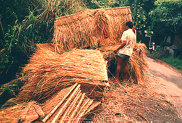 インド南部、タイやマレーシアではニッパやしの葉が一般的に屋根葺き材として使われている。河口のマングローブ湿地帯に群生している。茎はなく葉は地面から直接はえ長さは3-10mで、屋根葺き材としては、通風、断熱の特徴があり理想的な素材である。