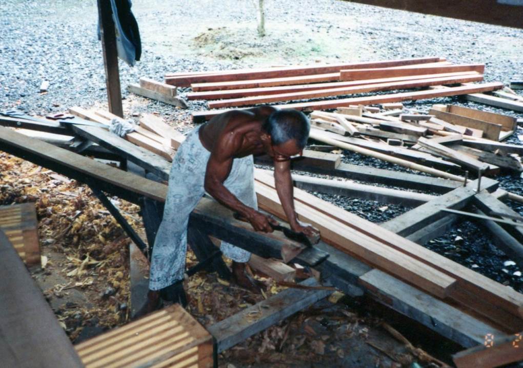 アランアラン材、工事の手順。多人数で共同で行なう。