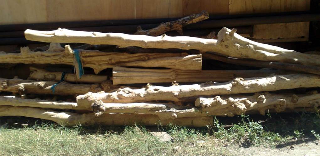 収集され木工所の片隅にあったコーヒーの木。形状が面白く、どこかに使えそうだ。