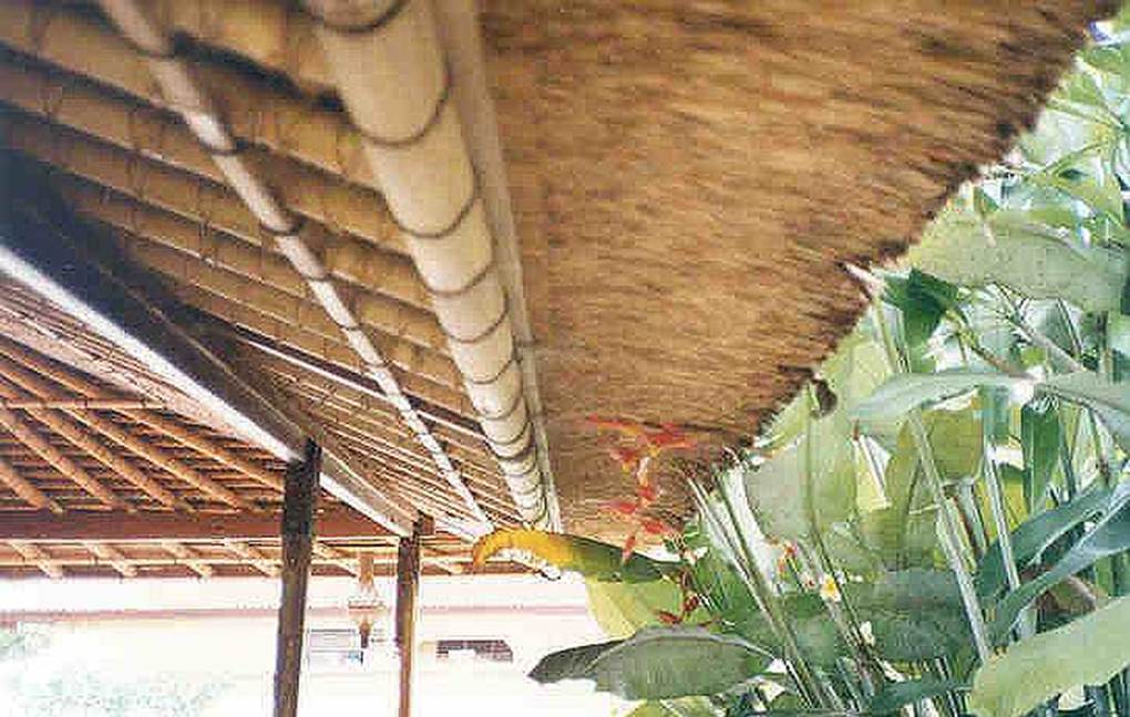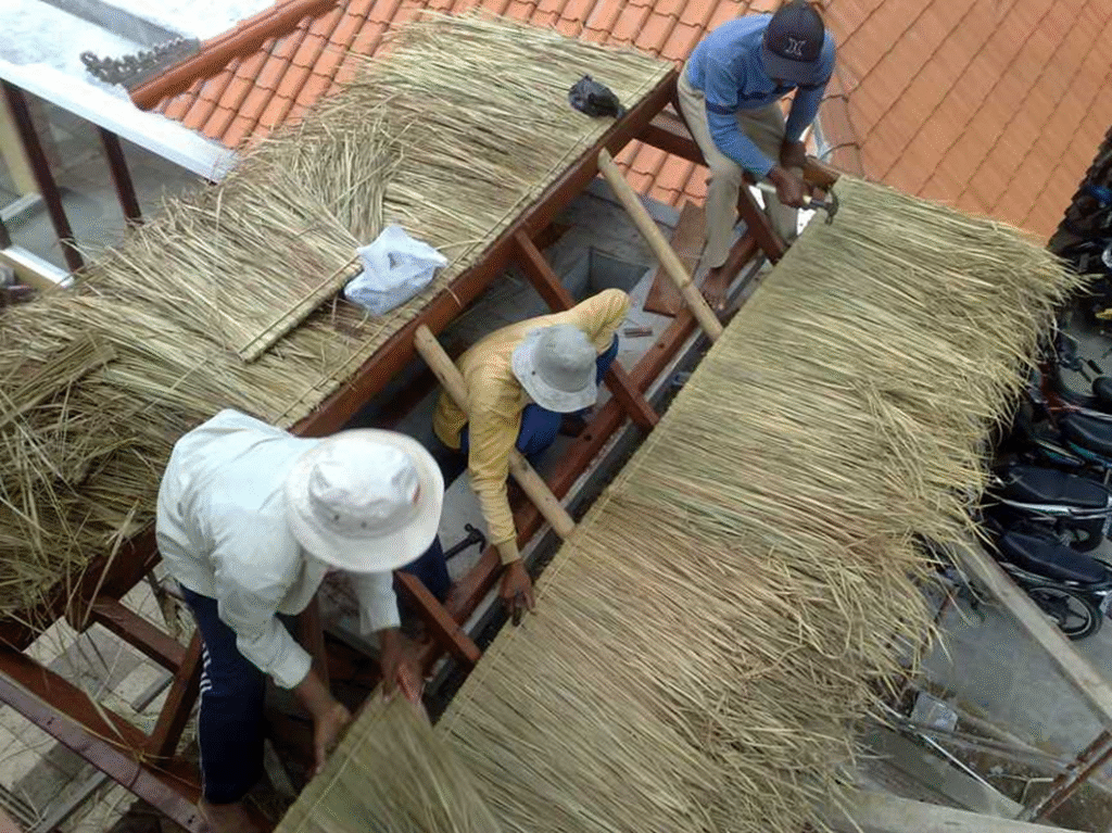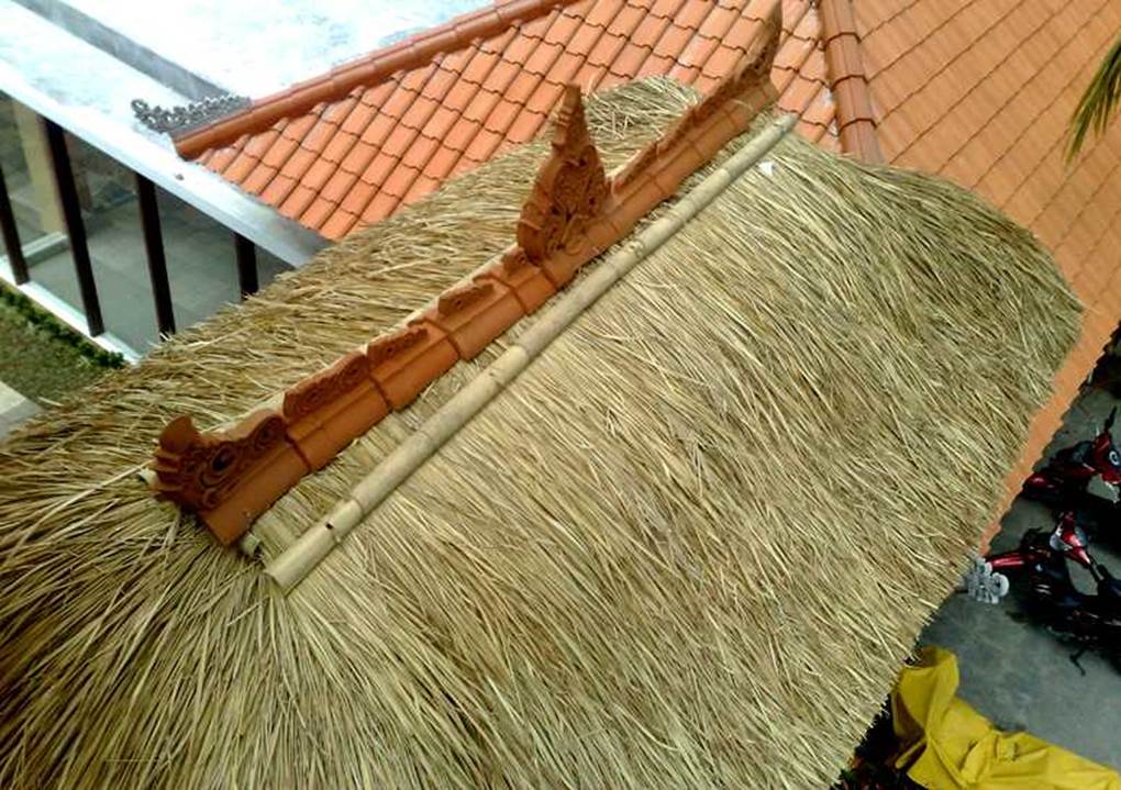 屋根葺材はバリ島の伝統に沿って、アランアランと呼ばれる草が使われる。