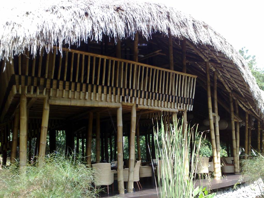 柱、梁、すべてが竹で作られたレストラン、ウブッドの南郊