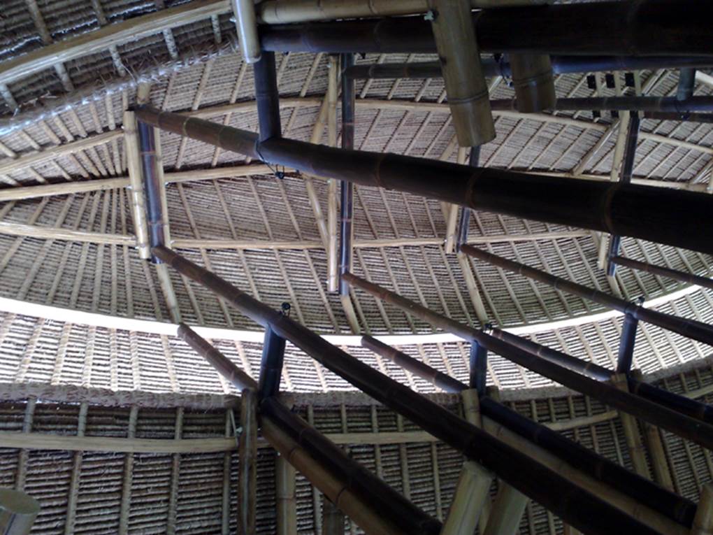 ウブド近郊にある「グリーン・スクール」の創立者夫婦は、南米コロンビア発祥の竹建築から強い影響を受け、下写真のような竹のみを素材にした学校を造った。