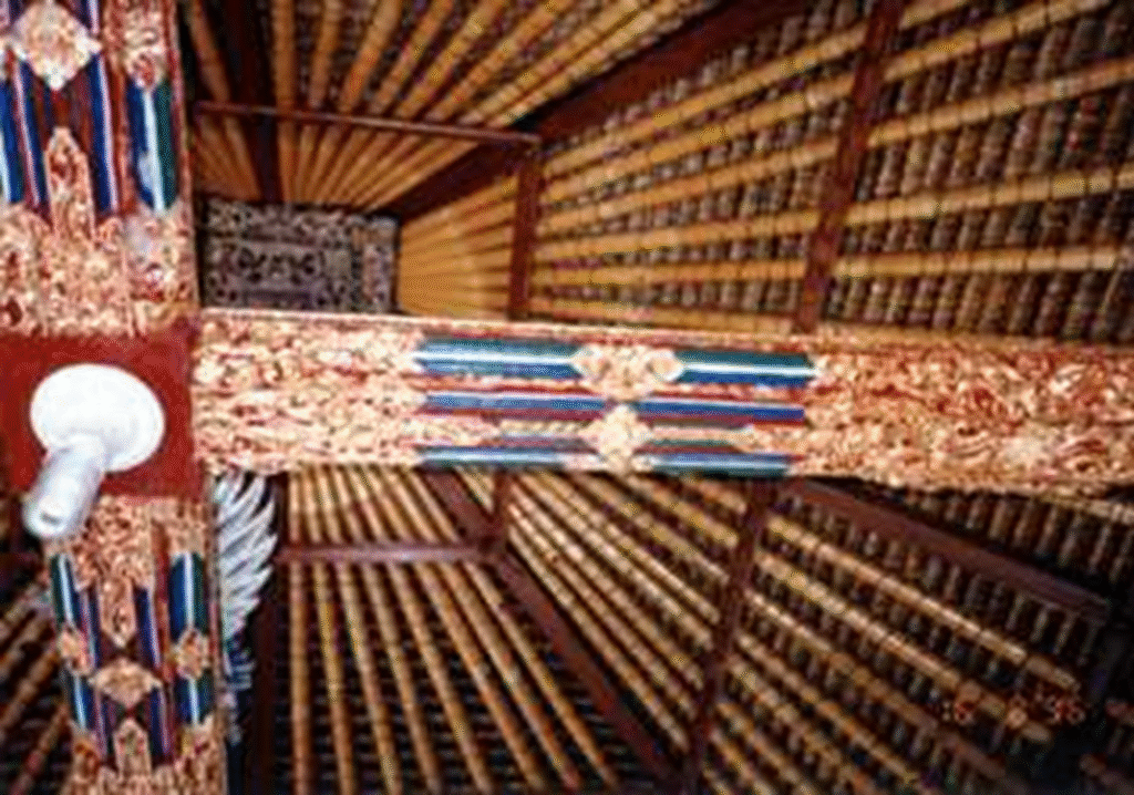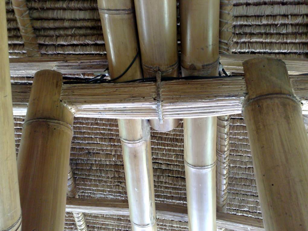 2. 屋根の構造材には基本的な部分には木材が使用され、残りの副次的部分には竹が使用される。