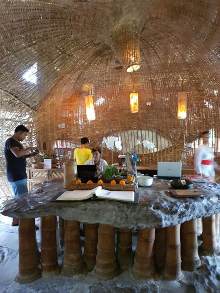ウブドの総竹作りレストラン。竹のオブジェ。