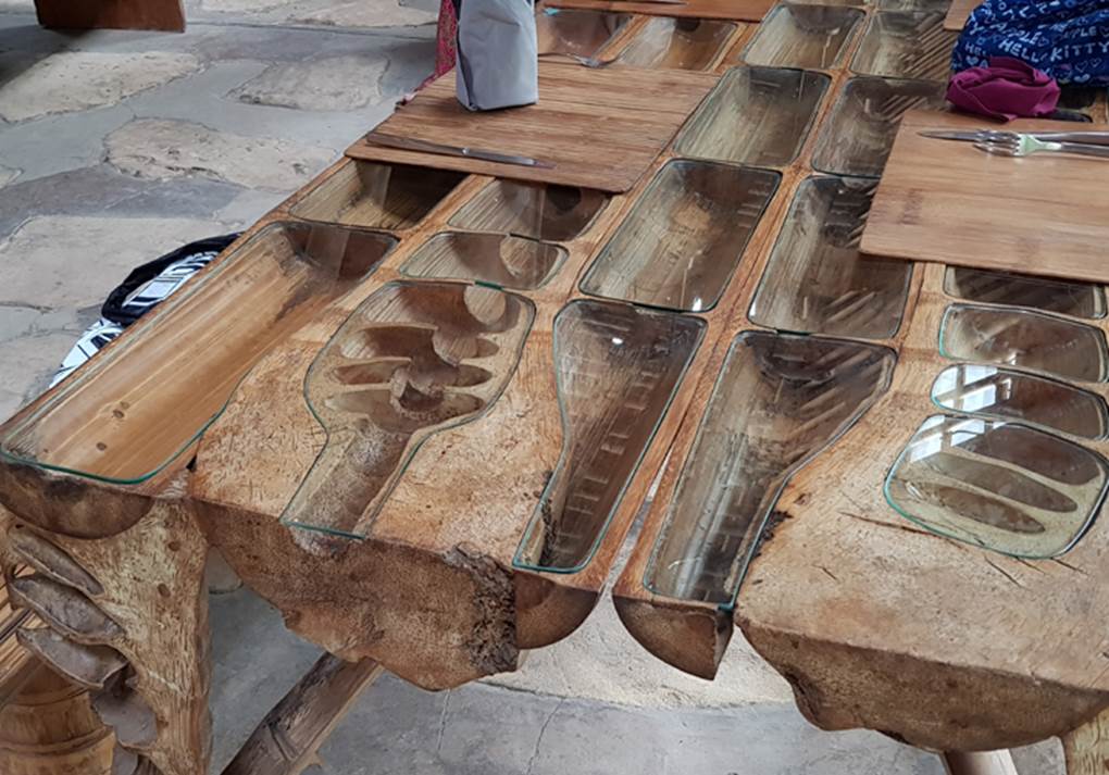 竹を割って内部を見せ、ガラス越しに自然の作り出した造形を楽しむ。