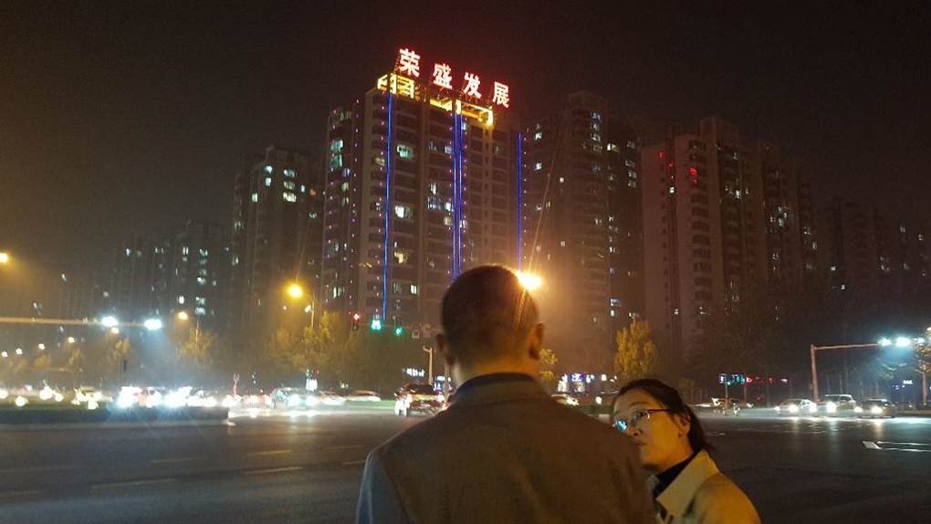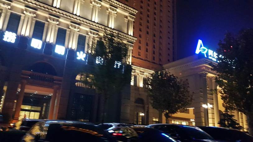 黄河西路。沧州市のメインストリートで、この辺りに沢山のホテルが集中しています。