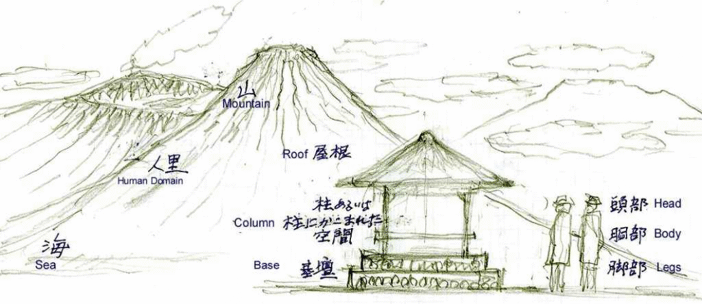 The following sketch is a representation of Turi Hita Karana’s philosophy of “nature,” “buildings,” and “the human body.”