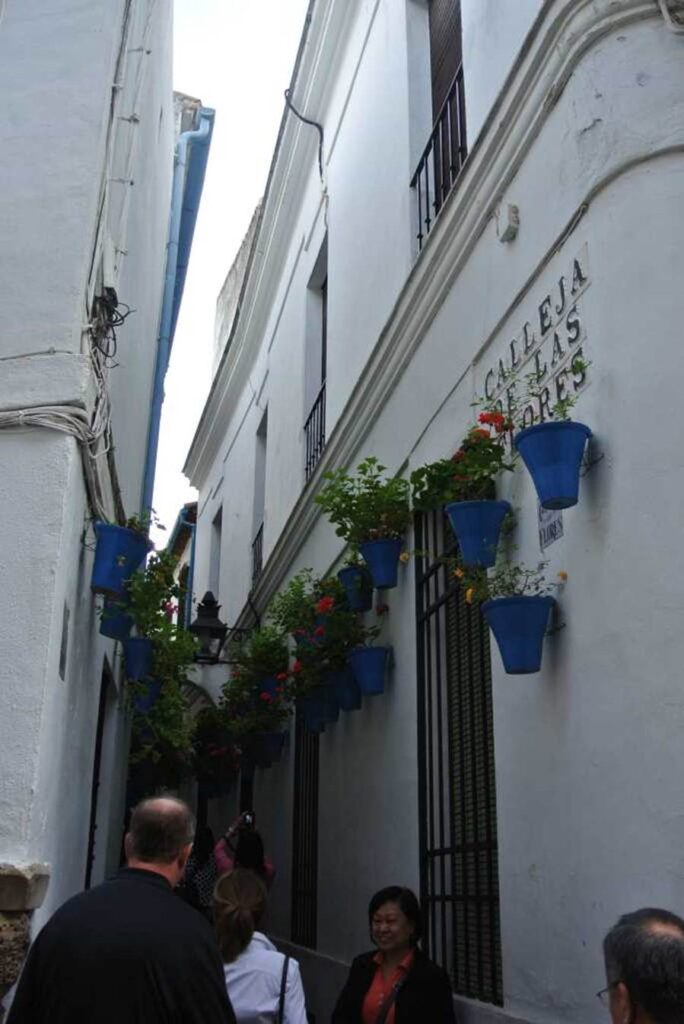 The streets are narrow but well kept. On the right wall, there is a sign that says CALLEJA DE LAS FLORES (Flower Alley).