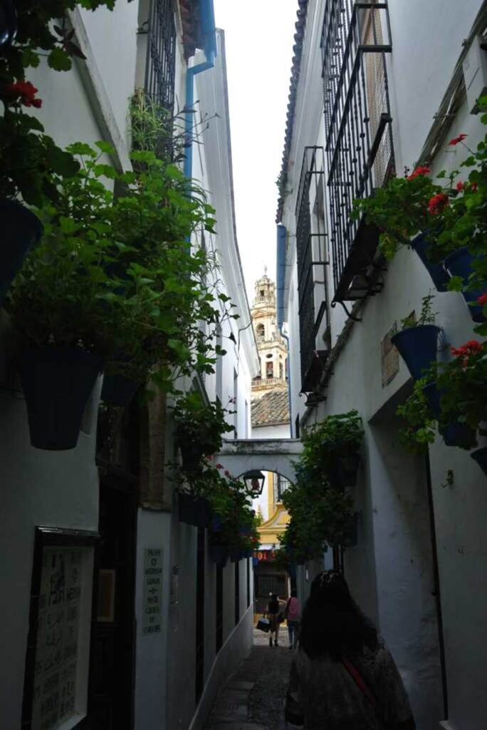A winding street area north of the Jewish quarter, the Mezquita.