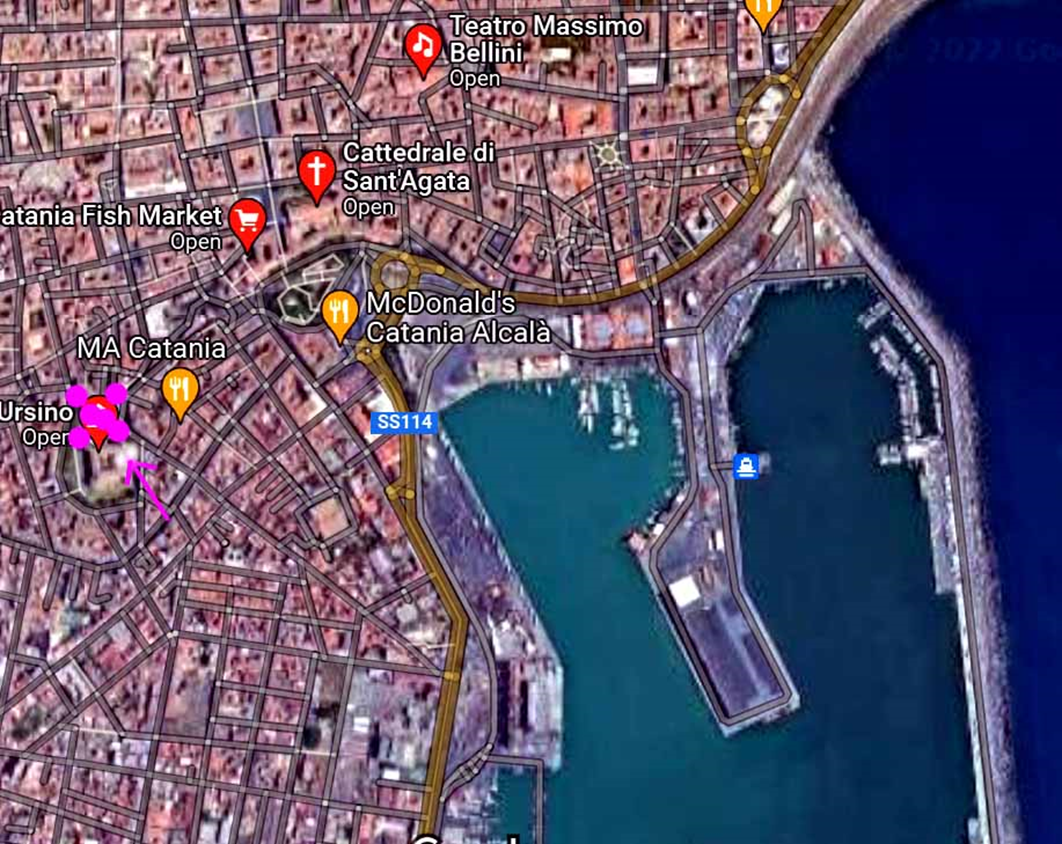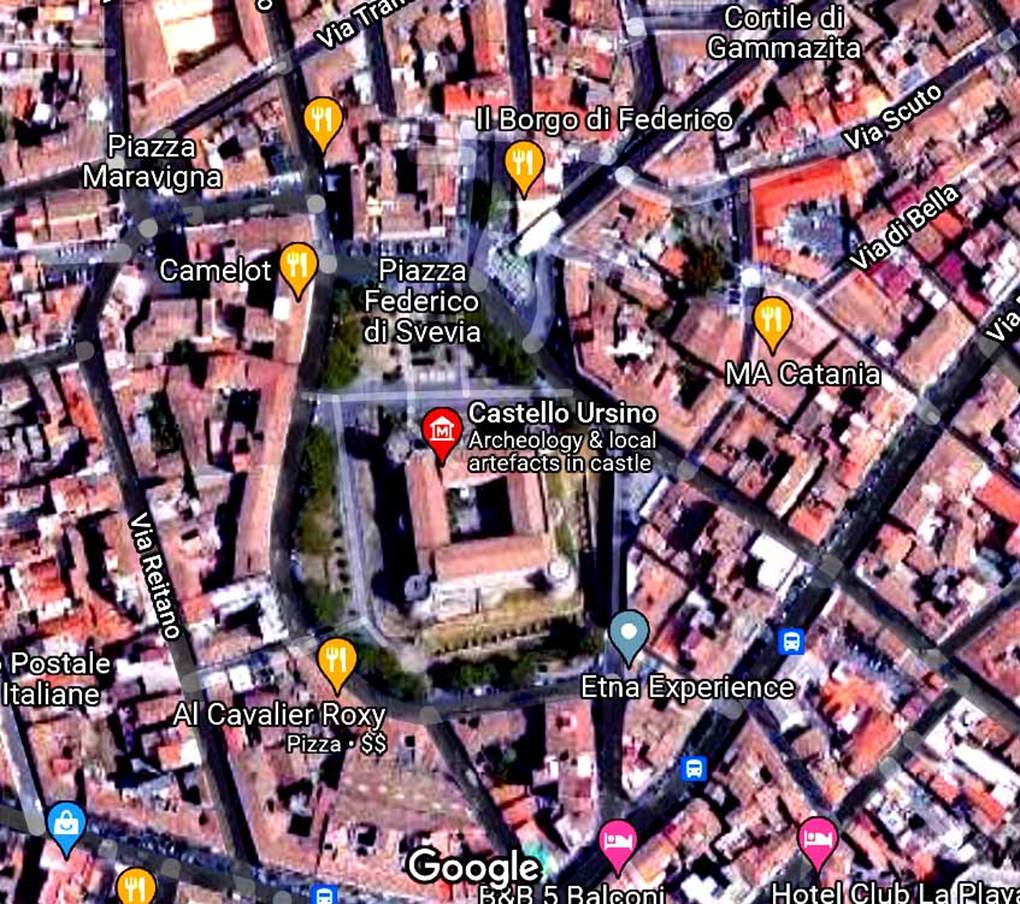 In front of the station, there was a large square in front of “Ursino Castle”, and many people were gathering, probably because it was a morning market.